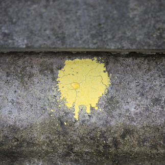 In this photo you have the shape and outline of a small splattered circle. The empty space gives contrast to the sudden colour in the middle